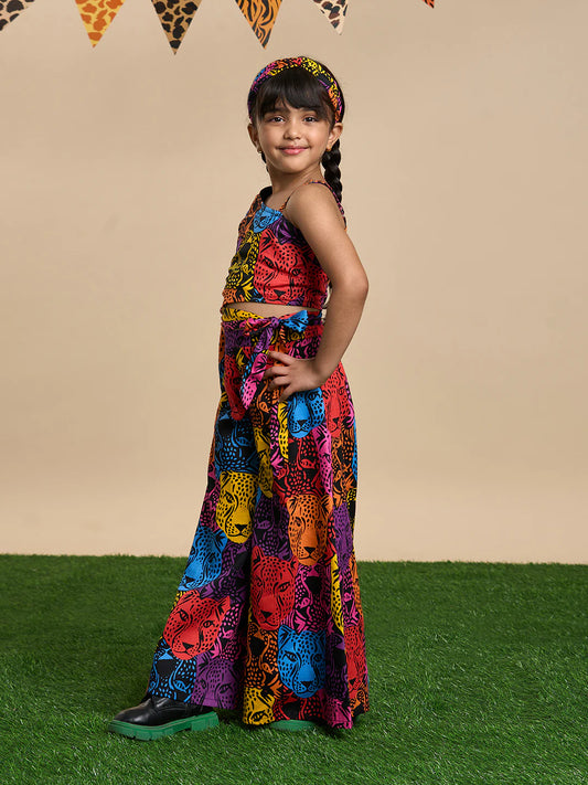 Leopard Girls Multi Color Stylish Top and Pant Set with Hairband