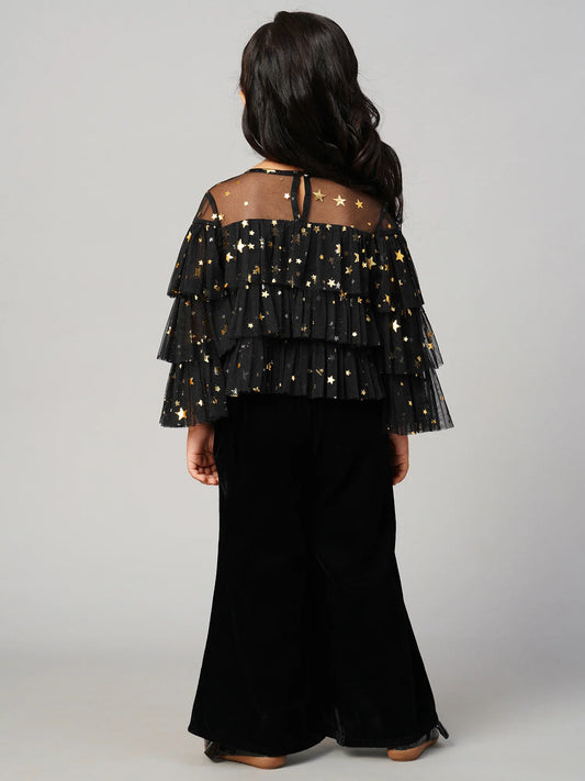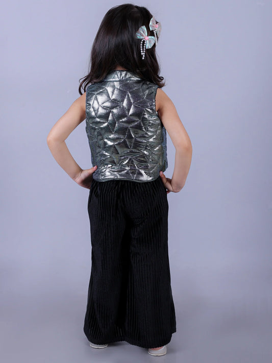 Glam Up Girls Shimmer Black Party Top with Pant set for Girls