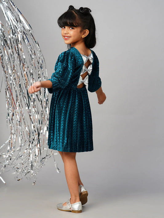 Glam Up Girls Shimmer Blue Party Top with Pant set for Girls