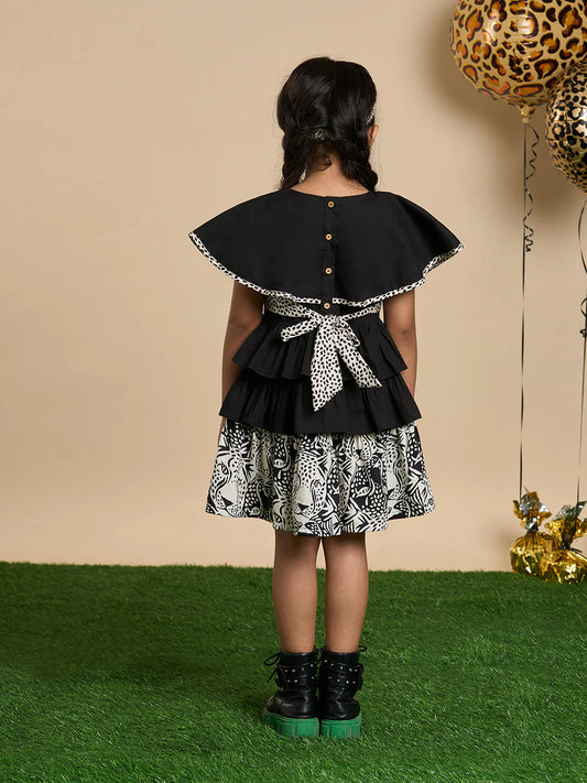 Leopard Girls Brown And Black Printed Dress With Hairband
