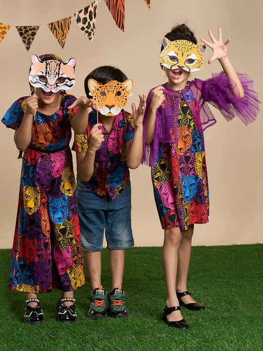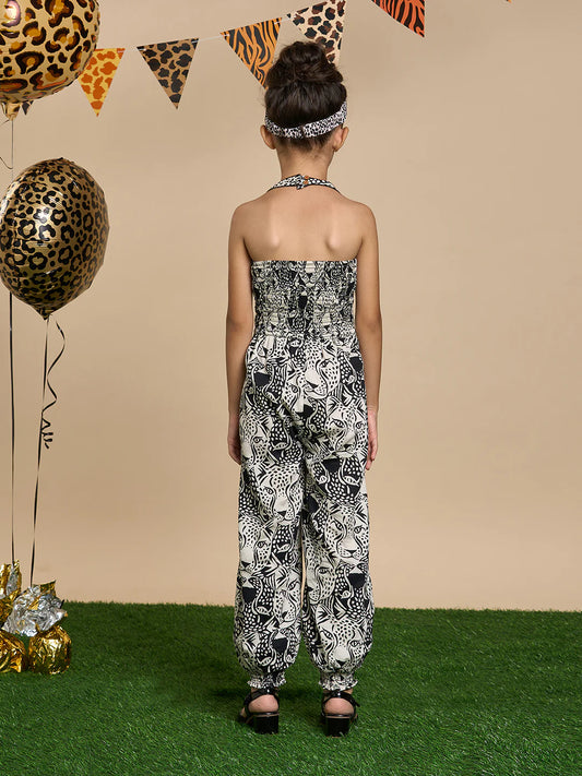 Leopard Girls Multi Color Stylish Jumpsuit with Hairband