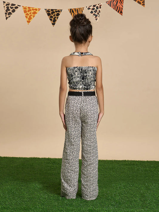 Leopard Girls Multi Color Stylish Top and Pant Set with Hairband