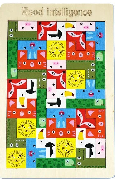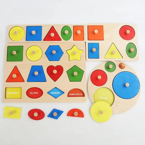 Wooden Shapes Puzzle Learning Toy, Montessori Game