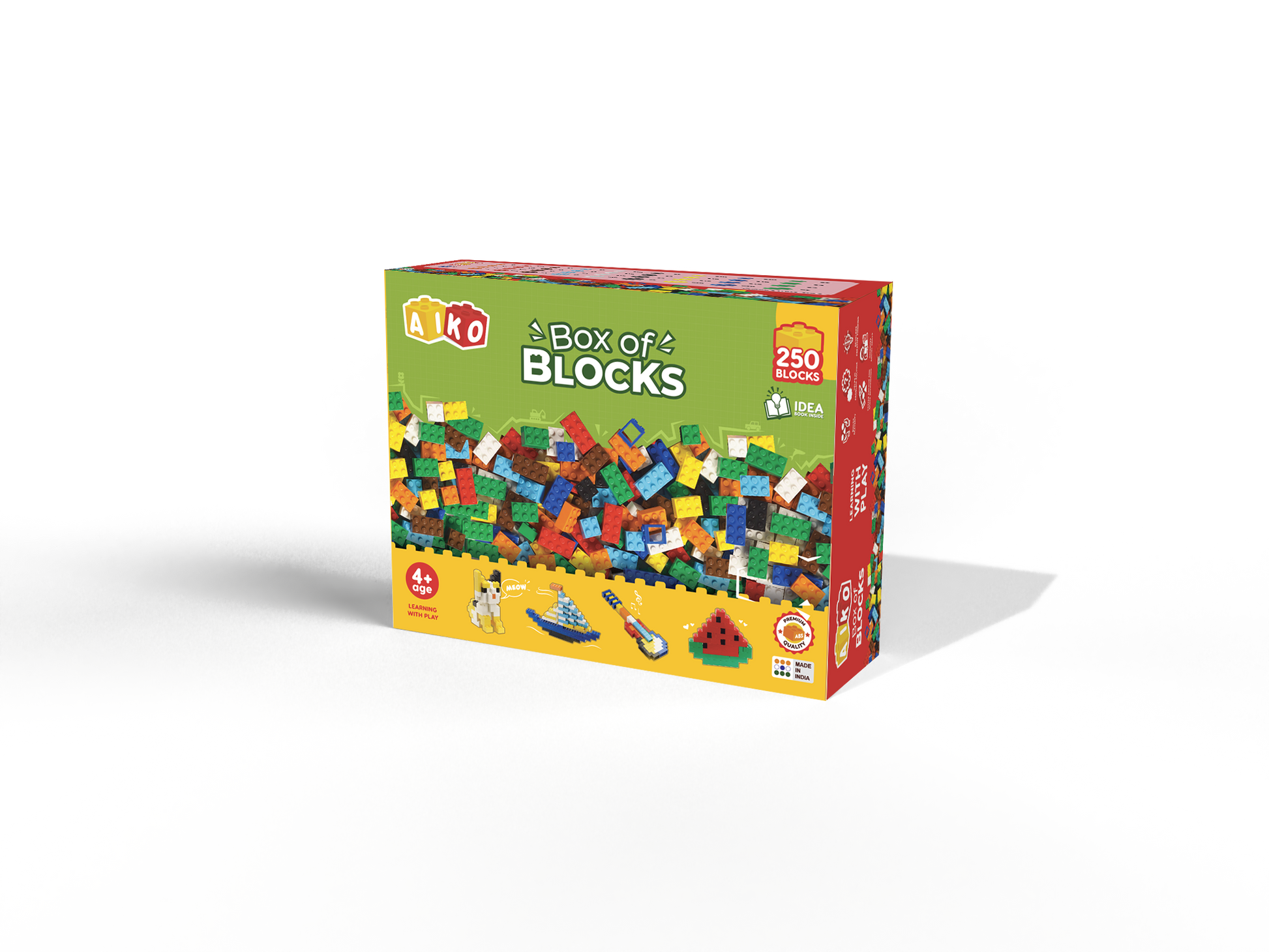 The AIKO Box of Blocks 250pcs contains 250 pieces. The first set in AIKO’s Box of Blocks range, it has 250 building blocks, and an easy-to-understand Idea Booklet to get young boys and girls started – it is an ideal construction toy choice for children above 4years of age, as it encourages free play. With this set, the child can be creative and use their imagination to express themselves with their creations. This AIKO set is a great addition to all the other blocks the child may have. This is the smallest set of the series.